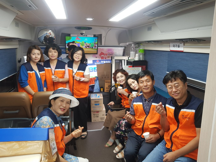 이날 헌혈봉사에는 무더운 날씨에도 김호현, 신상일, 유희자 이사 등을 비롯해서 회원 50명이 참여를 하였다.
