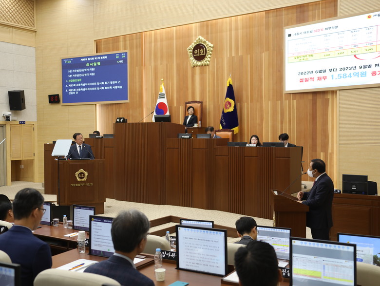 [세종 세계타임즈=이채봉 기자] 세종특별자치시의회 유인호 의원(보람동, 더불어민주당)은 12일 제85회 임시회 제1차 본회의에서 최민호 시장을 대상으로 “역대 최고의 세수 추계 오차가 발생한 것에 우려를 표한다. 세종시의 재정 여력이 좋지 않은 상황에서 내년 신규사업 및 대규모 투자사업 추진 시 시기나 투자 규모를 조정해 달라”며 긴급현안질문을 했다.