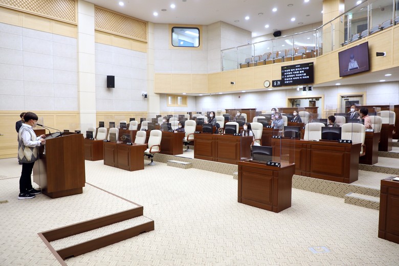 또한, 보람초 5학년 노하율 학생은 2분 발언을 통해 어린이의 시각에서 본 보행 안전 문제와 학교급식 개선, 공중도덕 지키기에 대한 의견을 발표했다.