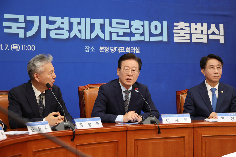 [세계타임즈 = 심귀영 기자] 더불어민주당은 국회에서 국가경제자문회의 출범식을 열어 현재 경제 상황을 진단하고 글로벌 경제 대응 방안 등을 논의했다.이재명 대표는 출범식에서 도널드 트럼프 대통령 당선으로 세계 질서가 변화를 겪을 가능성이 큰데, 그중 미국 우선주의가 우리 경제에 큰 영향을 미칠 것이라고 전망했다.이 대표는 민생과 경제가 어려운데, 정부가 전쟁 위기까지 불러오는 바람에 안 좋던 경제가 점점 더 나빠지고 있다고 말했다.국가 역량을 민생과 경제 회복에 다 쏟아부어도 부족할 상황에서 우리 정부의 대응이 참으로 아쉬운 바가 많다고 지적했다.민주당 경제자문회의 의장은 미래에셋대우 사장을 지낸 홍성국 전 의원이 맡았다.홍 전 의원은 경제 상황이 너무 엄중하다며 주기적으로 정책 대안을 마련해 당 지도부에 전달하고, 당이 요청한 정책 이슈와 관련한 연구도 진행하겠다고 말했다.이 대표는 지난 4일 최태원 SK그룹 회장을 만나 인공지능(AI) 산업 지원 방향에 대한 의견을 나눈 데 이어 오는 11일에는 한국경영자총협회와 정책 간담회를 한다.2025년 시행 예정인 금융투자소득세가 주식 시장을 위축시킨다는 개미 투자자들의 주장에 금투세 폐지 요구를 수용하는 한편, 전날 당 차원의 주식시장 활성화 태스크포스(TF)를 띄워 자본시장 선진화를 위한 상법 개정을 추진하겠다고 밝히기도 했다.이같은 이 대표의 민생·경제 행보와 메시지는 국민의 먹고사는 문제 해결에 집중하는 실용 노선을 추구해 미래 지도자 이미지를 부각하려는 시도로 읽힌다.야권에선 윤석열 대통령 탄핵까지 거론하며 여권을 향한 공세를 지속하지만, 이 대표는 이와 거리를 둠으로써 자신의 집권을 위한 정치 공세라는 역공을 피하는 동시에 중도층으로 외연을 넓히겠다는 것으로 해석될 수 있다.