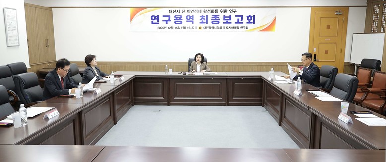 연구회 회장인 이금선 의원(국민의힘, 유성구4)은 연구용역 최종보고 청취에 앞서, “미국, 싱가포르를 비롯한 세계 각지에서 문화시설의 야간 개방과 교통·안전 관리를 강화해 신 야간 경제 관리 체계를 도입하고 있다”면서, “이러한 세계적 흐름에 발맞춰 대전시도 신 야간경제가 활성화되어야 한다”라고 강조했다.
