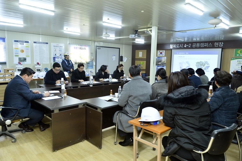 이날 대학캠퍼스유치특위(위원장 김영현)의 점검은 대학교 공동캠퍼스 조성 현황 보고 및 청취, 질의‧답변, 공동캠퍼스 시설 공사 현장 방문 순으로 진행됐다. 참석자로는 대학특위 위원들과 시청 관계 공무원, LH 세종특별본부 직원, 감리단 직원, 건설사 현장 소장 등이 자리했다.