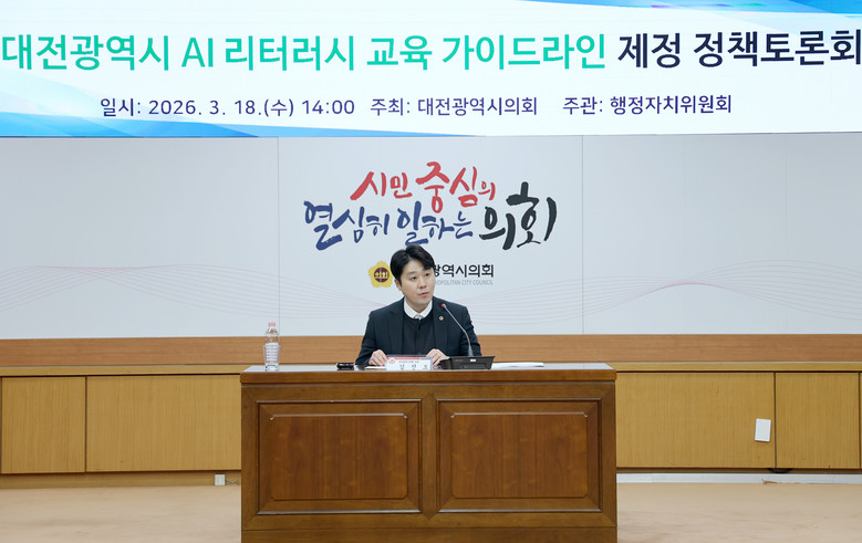 [대전 세계타임즈=이채봉 기자] 대전광역시의회가 18일 시의회 소통실에서 김진오 의원(국민의힘, 서구 1)을 좌장으로 ‘AI 리터러시 교육 가이드라인 제정 정책토론회’를 개최했다.