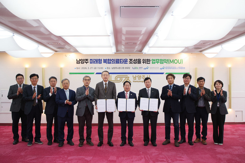 남양주시는 27일 시청 여유당에서 중앙대학교의료원, 중앙대의료원 교육협력 현대병원과 ‘남양주 미래형 복합의료타운’ 조성을 위한 업무협약(MOU)을 체결했다.