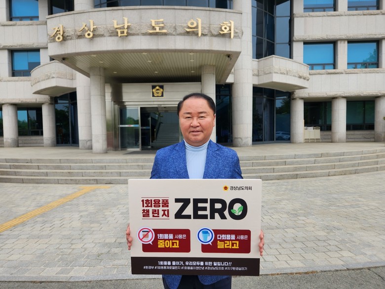 [경남 세계타임즈=최성룡 기자] 박춘덕(국민의힘, 창원15) 경남도의원이 21일 일상생활에서 일회용품 사용 줄이기 실천을 약속하는 환경부 주관 ‘1회용품 제로 챌린지’에 동참했다.