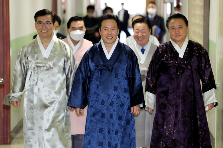 [충북 세계타임즈=이현진 기자] 충북도의회(의장 황영호)는 1월 12일(목) 14시 제406회 1차 본회의에서 황 의장을 비롯해 김영환 지사, 윤건영 교육감, 도의원 전원과 회의 진행을 담당하는 사무처 직원 등 45명이 한복을 입고 회의를 진행했다.