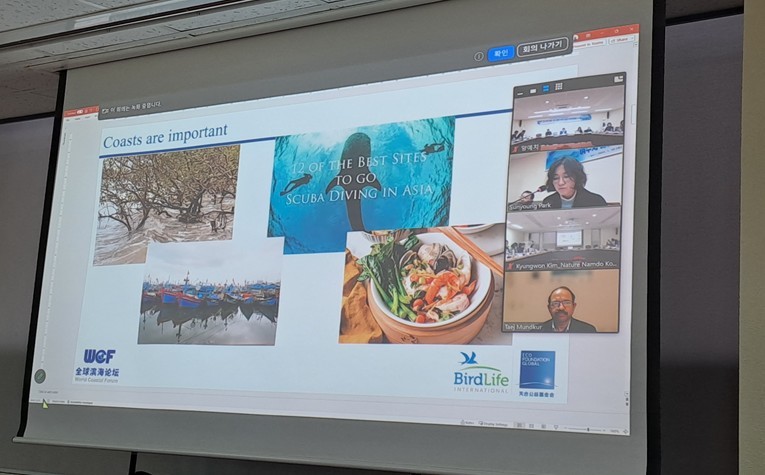 네덜란드 현지에서 화상회의로 참여한 태지 문커 세계연안포럼 조정그룹 조정자는 세계연안포럼의 존재 의의와 향후 과제에 대해 말하며, 지속가능한 연안을 만들기 위해 여수시와 협력을 제안했다.