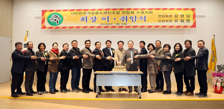 [수원시 세계타임즈=송민수 기자] 수원특례시의회(의장 이재식)가 8일(목) 수원시농수산물도매시장 관리동 대강당에서 열린 수원시 전국과실중도매인조합 연합회 수원시지회 연합회장 이·취임식에 참석했다.