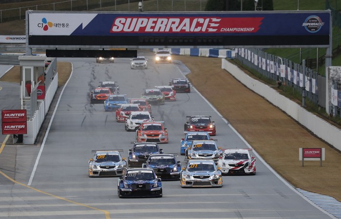 [사진설명] 2018 CJ대한통운 슈퍼레이스 챔피언십 8라운드 경기가 열린 지난 27일 에버랜드 스피드웨이에서 캐딜락 6000 클래스 결승전이 시작되고 있다. 2019년 첫 경기도 같은 장소에서 열릴 예정이다.