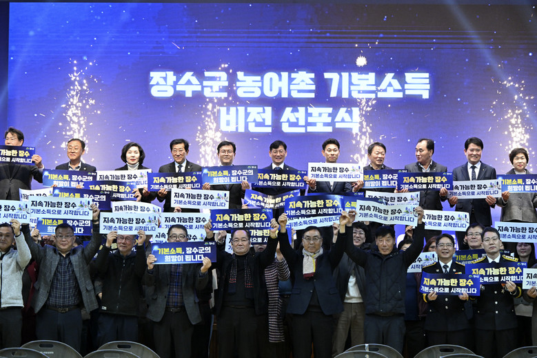 이날 행사는 장수군이 농어촌 기본소득 국가 공모사업에 추가 선정된 것을 군민과 함께 축가하고 ‘기본소득을 통해서 꿈을 가꾸는 희망의 도시 장수’라는 기본사회 실현을 위한 비전을 선포하는 의미 있는 자리로 마련됐다.