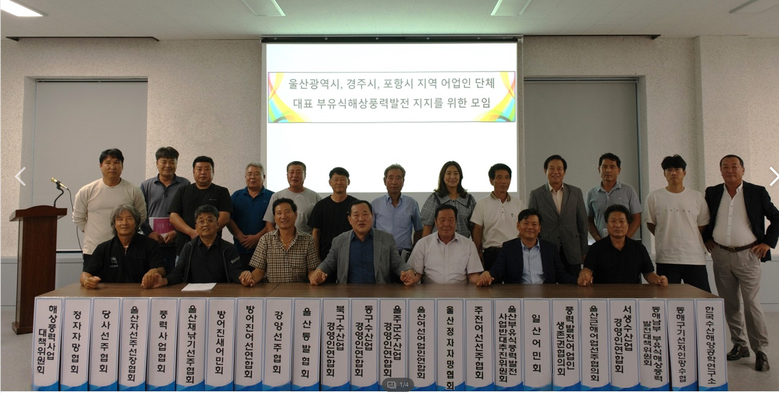 울산시는 이러한 국가정책을 반영하여, 부유식 해상풍력 발전을 통해 지역 에너지 자립과 더불어 탄소중립 실현에 앞장서겠다는 의지를 보이고 있는 가운데 울산광역시 및 경북 지역의 20여 개 어업인협회 회장 교과역사 앞바다에서 추진중인 부유식해상 풍력발전을 지지하기 위해 한자리에 모였다.