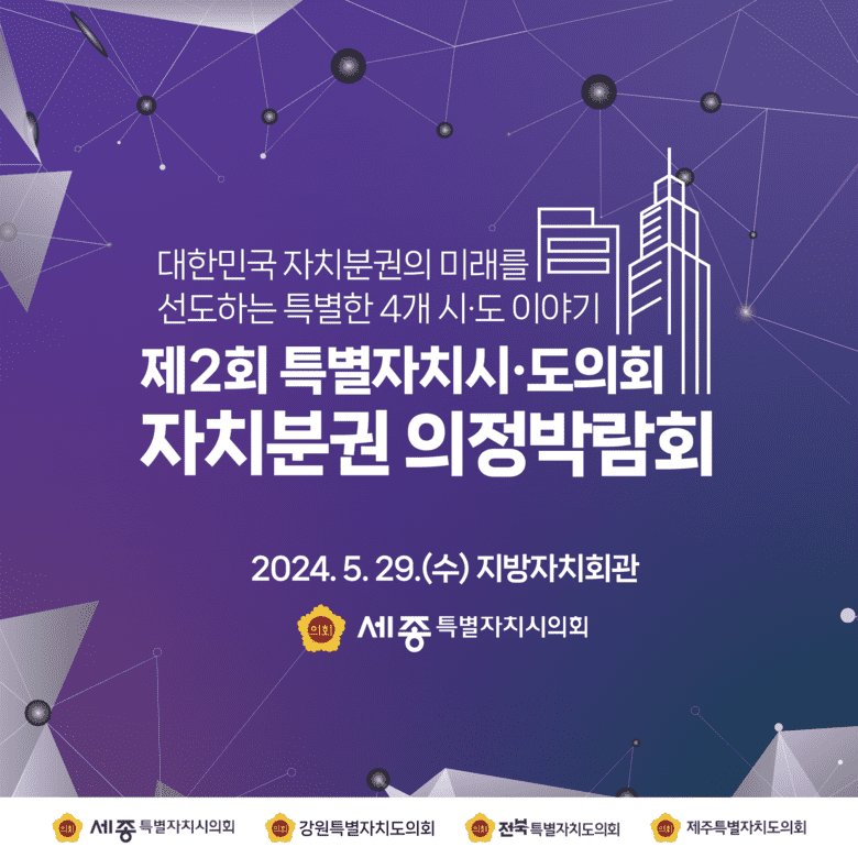 4개 특별자치시‧도의회는 이번 의정박람회를 계기로 공동 성명서 발표는 물론, 특별자치시‧도의 주요 현안 및 비전에 관한 논의를 통해 협업 과제를 발굴할 예정이다. 아울러 논의로부터 수렴된 내용은 이후 실질적인 정책 대안을 수립하는 데 적극 활용할 계획이다.
