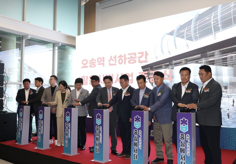 이날 준공식에는 김영환 지사, 충북도의원, 국가철도공단 이현철 경영본부장 등 지역 주요 인사와 100여 명의 도민이 참석해 “오송역 선하공간 활용 시범사업”의 미래를 향한 첫걸음을 축하했다.