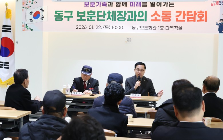 이날 간담회에는 박희조 동구청장을 비롯해 지역 내 10개 보훈단체 지회장과 사무국장들이 참석해, ▲단체별 운영 현안과 애로사항 ▲정책 건의사항 등을 공유하며 자유로운 의견 교환과 소통의 시간을 가졌다.