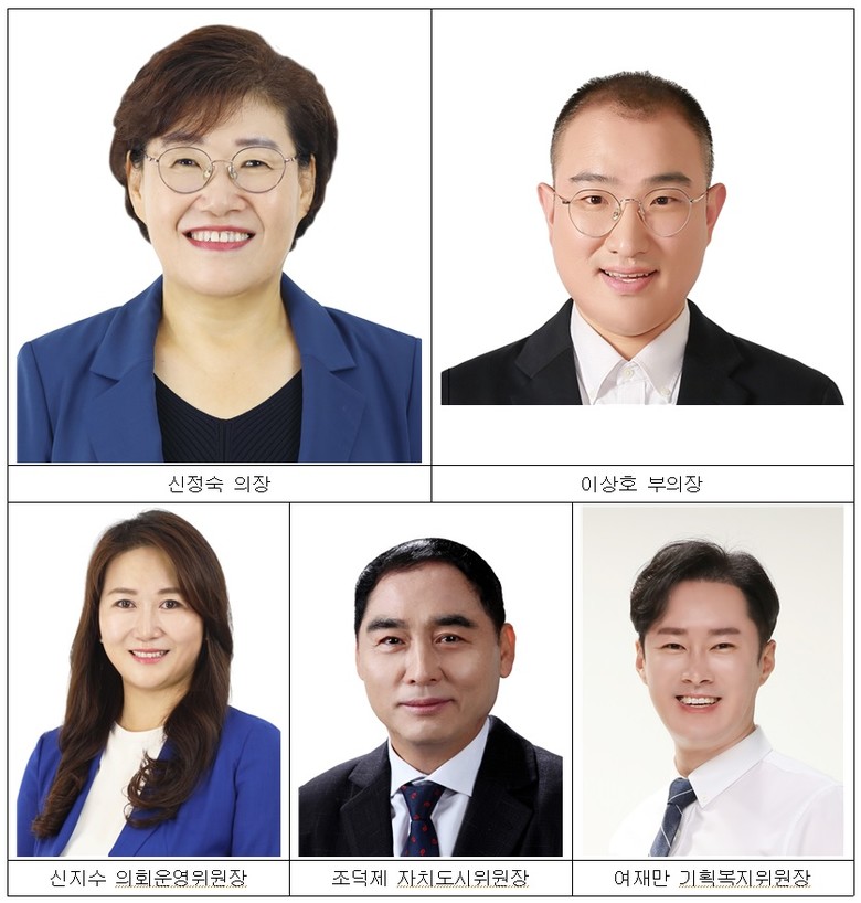 의장에 신정숙 의원(재선, 더불어민주당), 부의장에 이상호 의원(초선, 국민의힘), 의회운영위원장에는 신지수 의원(초선, 더불어민주당), 자치도시위원장에는 조덕제 의원(초선, 더불어민주당), 기획복지위원장에는 여재만 의원(초선,국민의힘)을 각각 선출했다.