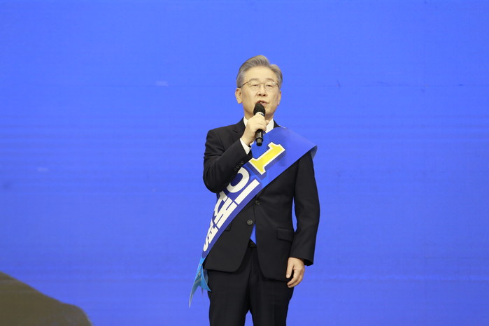 이 후보는 이어 "저 이재명은 지킬 약속만 했고 한번 한 약속은 반드시 지켰다. 성남시장과 경기도지사를 거치며 확고한 소신과 비전, 용기와 추진력으로 능력을 실적으로 증명했다"며 "없는 죄도 만드는 부패기득권과 정면으로 맞서 싸웠다"고 밝혔다.