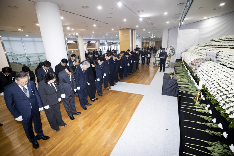 [경북 세계타임즈=한윤석 기자] 경상북도의회 박성만 의장과 도의원, 의회사무처 직원들은 12월 31일 도청 동락관 1층에 마련된 ‘제주항공 여객기 사고 사망자 합동분향소’를 찾아 헌화와 묵념을 하며 사고 희생자의 넋을 기렸다.