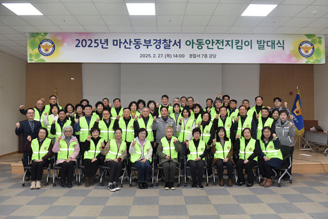 [세계타임즈]최성룡기자 = 마산동부경찰서(서장 채경덕)는 25. 2. 27.(목). 14:00, 경찰서 7층 강당에서 25년 아동안전지킴이 발대식 및 직무교육을 실시하였다.