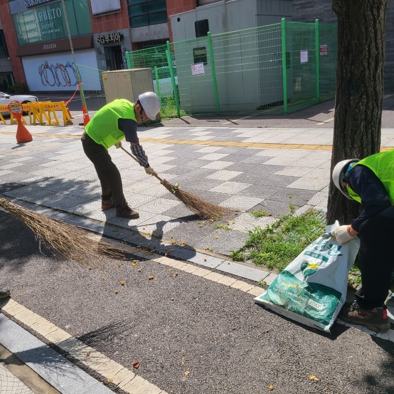 구에 따르면 9월 말에서 10월 말까지 진동 수확 장치와 장대 등을 활용해 가로수 은행 열매 수확 작업을 진행한다.