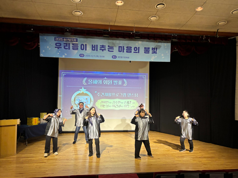 [서구 세계타임즈=이채봉 기자] 대전 서구정신건강복지센터(센터장 신상호)는 중증정신질환관리사업의 올 한 해 성과를 돌아보고 회원들의 회복과 성장을 함께 축하하는 송년 발표회 ‘우리들이 비추는 마음의 불빛’을 개최했다고 12일 전했다.