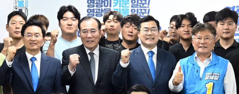 [세계타임즈 = 심귀영 기자] 10월 16일 치러지는 전남 영광군수 재선거에 야당 대표들이 직접 현장에 뛰어들면서 선거판이 커지고 있다.특히 조국혁신당이 민주당 텃밭에서 돌풍을 일으킬 조짐을 보이자, 더불어민주당도 지도부가 현장에서 선거를 직접 챙기고 나서 두당의 자존심을 건 한판 대결로 치러지게 됐다.민주당 이재명 대표는 23일 장세일 영광군수 후보 사무실에서 현장 최고위원회의를 주재하고, 민생 현장 방문 및 쌀값 안정화를 위한 정책간담회 등을 연이어 소화한다.추석 연휴 이후 지역민심을 살피는 간담회지만, 월세방까지 얻고 후보 지원에 나선 조국혁신당을 견제하기 위해서라는 분석이 많다.민주당 박찬대 원내대표도 정청래·강선우 의원 등과 함께 22일 영광에서 현장 일정을 가졌으며, 5선의 박지원 의원도 영광군수 재선거 선거대책위원장을 맡아 매주 주말 영광을 오가며 지지를 호소하고 있다.혁신당 조국 대표는 추석 연휴 전부터 영광과 곡성에 월세방을 잡고 서울과 지역을 오가며 직접 선거를 챙기고 있다. 추석 연휴 직후 첫 최고위원회의도 영광에 있는 장현 예비후보 사무실에서 열었다.조 대표는 나비효과를 언급하며 장 후보가 당선되는 순간 호남 전체에 태풍이 불 것이라며 민주당 텃밭을 흔들어 결실을 내겠다는 각오다.