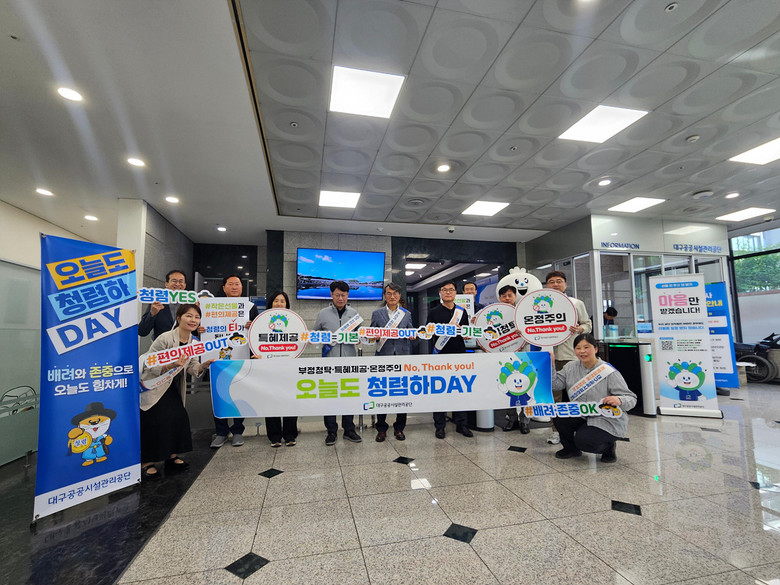 이번 캠페인은 대구시에서 추진 중인 ‘청렴하DAY’ 캠페인의 일환으로, 임원과 부서장이 직접 참여해 부패 취약분야 척결과 지역 내 청렴 문화 확산을 위한 실천의 장으로 마련됐다.