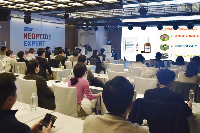 이번 심포지엄에서는 두피 및 모발 케어를 위해 사용할 수 있는 새로운 더모코스메틱으로 듀크레이 네옵타이드 엑스퍼트가 집중 조명됐다. 특히, 실제 모발 및 두피 분야에서 확인한 모발 케어 더모코스메틱의 제품성과 후기 사례가 소개돼 참석자들의 관심을 모았다.