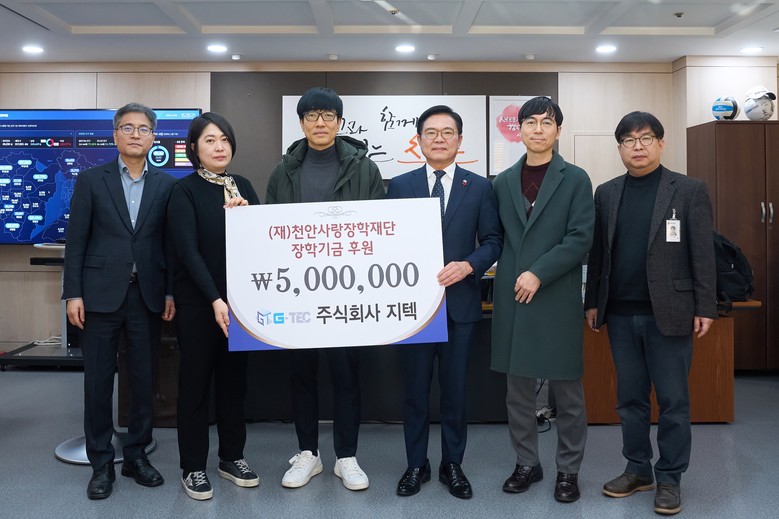 이날 천안시청 부시장실에서 열린 전달식에는 김석필 천안시장 권한대행 부시장과 최부식 ㈜지텍 대표이사 등이 참석했다.