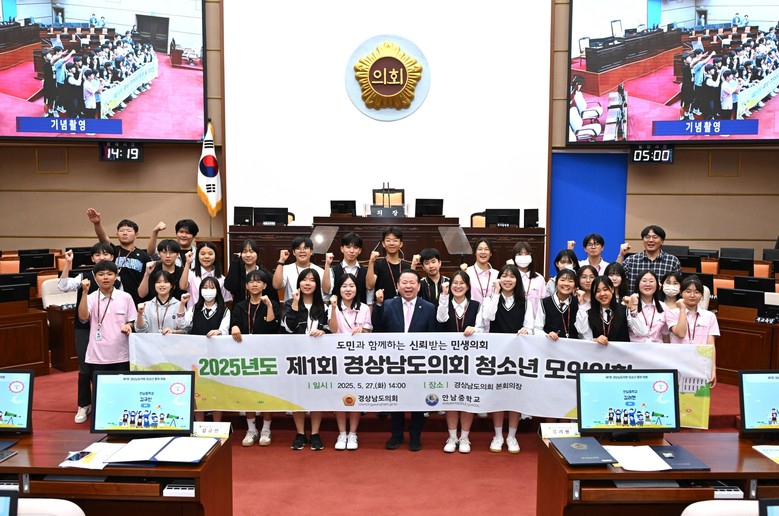 [경남 세계타임즈=최성룡 기자] 경상남도의회(의장 최학범)는 5월 27일(화), 도의회 본회의장에서 ‘2025년 제1회 청소년 모의의회’를 개최하였다.