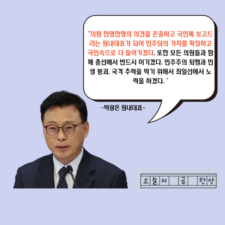 [세계타임즈 백진욱 기자] 28일(금) 더불어민주당 신임 원내대표 선출에서 박광온 의원이 당선됐다는 소식이 나왔다.
