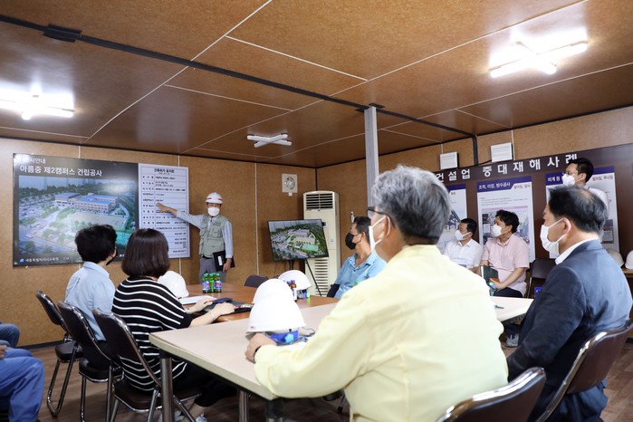 이날 상병헌 의원은 공사 현장 방문에 앞서 아름중학교 학교장을 비롯한 교육청 관계자와 함께 철근 부족 등으로 인한 공사 지연과 본교와 약 150m 떨어진 캠퍼스 설립으로 발생하는 여러 현안 사항을 논의한 뒤, 관계 공무원들과 제2캠퍼스 공사 현장 모습을 둘러봤다.