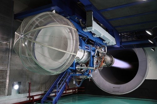 시운전 테스트 진행 중인 한화에어로스페이스의 F414 엔진[한화에어로스페이스 제공]