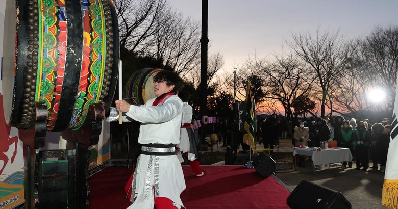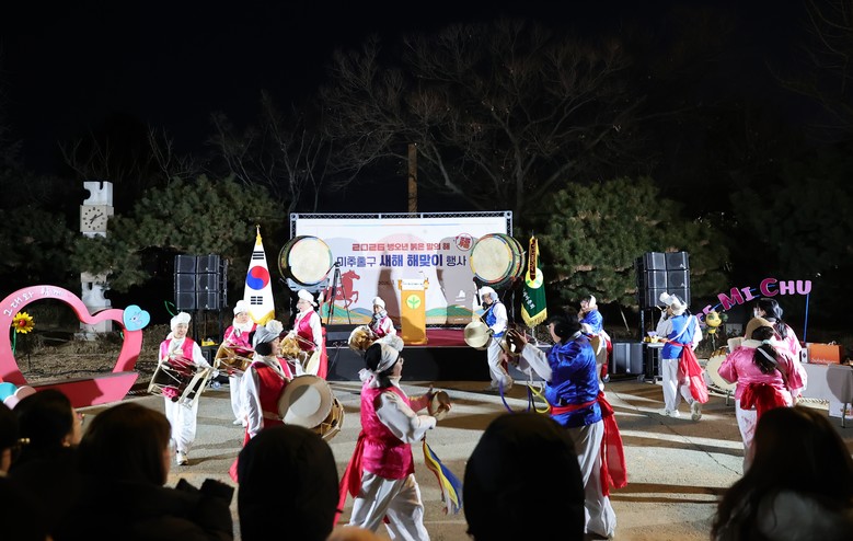 어둠을 깨우는 풍물 공연과 대북 공연이 행사 시작을 알린 후, 구민들의 안녕과 행복을 기원하는 소망 기원 퍼포먼스가 이어졌다. 붉은 해가 솟아오르는 순간, 참석자들은 각자의 소망을 빌며 새해를 맞이했다.