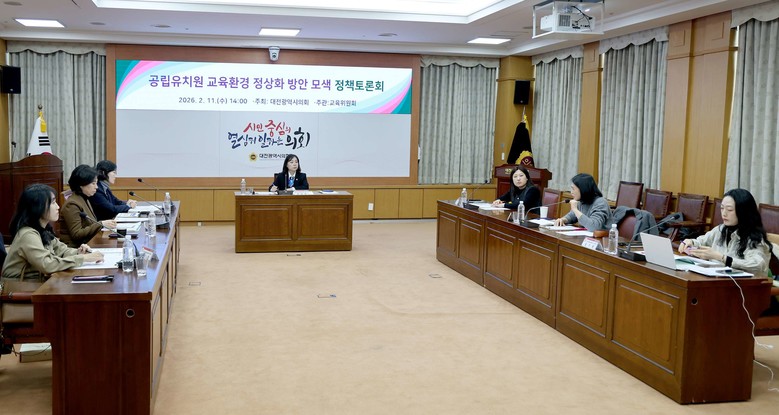 [대전 세계타임즈=이채봉 기자] 대전시의회는 11일 시의회 소통실에서 김민숙 의원(더불어민주당, 비례대표) 주재로 ‘공립유치원 교육환경 정상화 방안 모색 정책토론회'를 개최했다.