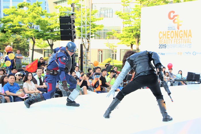 또한 이번 페스티벌의 깜짝 하이라이트여던 2019 청라뷰티페스티벌 초청 코스프레팀 '코스믹 히어로'팀이다. 코스믹히어로는 어벤져스 히어로 전문 코스프레팀으로써 이번년도 초에 기획되어 다양한 행사장에서 멋진 히어로 코스프레로 활동하는 팀이다.