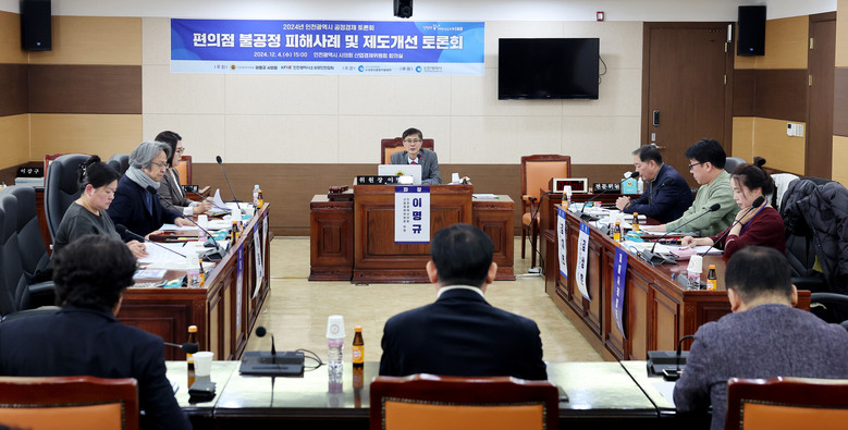 인천시의회 산경위 소속 이명규 의원(국·부평구1)은 4일 인천시소상공인연합회와 공동으로 ‘2024년 인천광역시 공정 경제 토론회’를 개최하고, ‘편의점 불공정 피해사례 및 제도개선’에 대해 논의했다.