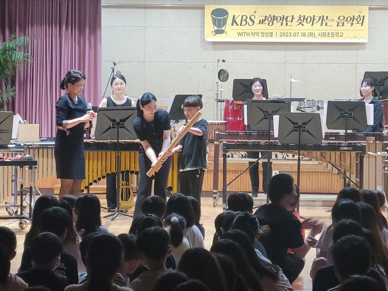 [시흥시 세계타임즈=송민수 기자] 시흥 시화초등학교(교장 이미섭)는 2023년 7월 18일 KBS 교향악단과 협력하여 아름다운 음악을 경험할 수 있는 문화예술공연을 펼쳤다. 다문화 학생 비율이 70%인 시화초등학교는 다양한 문화예술 활동으로 학생의 꿈과 끼를 펼칠 수 있도록 교육활동을 전개하고 있으며 그 활동 중 하나로 KBS 교향악단과 함께하는 음악 나들이를 기획하게 되었다.