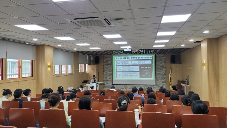 발표자로 참여한 김희영(영어) 교사는 ‘수업사례 발표를 준비하면서 지난 수업 활동을 재점검할 수 있었고 2학기에 학생의 성장을 위해 더욱 다양한 활동을 구상할 필요성을 느끼는 계기가 되었고, 다른 교과의 사례 발표를 통해 수업에 적용할 수 있는 다양한 활동에 관한 아이디어를 얻을 수 있었다.’라고 말했다.