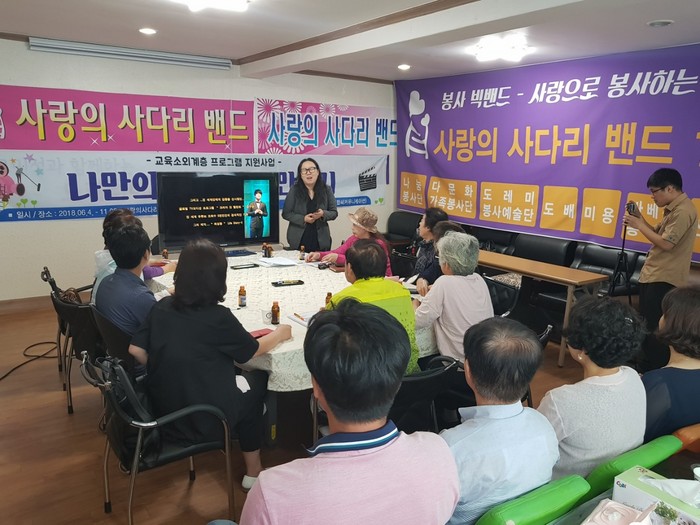 6천명 SNS 밴드 회원들이 활동하고 있는 사단법인 사랑의 사다리 밴드는 회원들의 자발적인 후원과 참여로 다양한 봉사활동을 꾸준하게 하면서 우리 사회에 따뜻한 나눔을 실천하고 있으며, “나만의 미니다큐 만들기”교육은 매주 월요일 오전10시에 하고 있다.