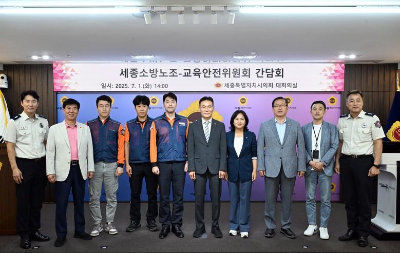 이번 간담회에는 교육안전위원회 위원 4명과 세종소방노조, 소방본부 관계자들이 참석하여, 현장 중심의 위험 직무에 종사했던 소방공무원이 퇴직 후에도 건강을 체계적으로 관리받을 수 있도록 제도적 지원 필요성에 대해 논의했다.