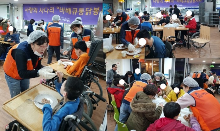 [대전=세계타임즈 이장성 기자] 다양한 봉사활동을 꾸준하게 하고 있는 대전시 SNS 봉사단체 사랑의 사다리 밴드(리더 이정제)는 12일 오후5시, 유성구 용계동에 위치한 중증장애인거주시설 성세재활원(원장 김원식)에서 바비큐 통닭봉사로 우리 사회의 따뜻한 사랑을 전달하였다.