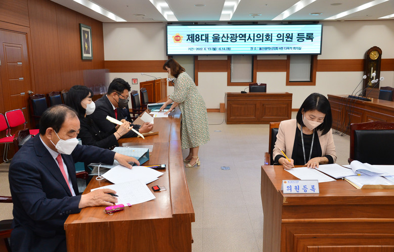 당선자들은 당선증 사본, 의원겸직 신고서, 이력서, 의원서명 및 등록인장 카드, 고위공직자 민간부문 업무활동내역서 등 서류를 제출하고 울산시의회 의원으로 활동하기 위한 등록을 마무리했다.