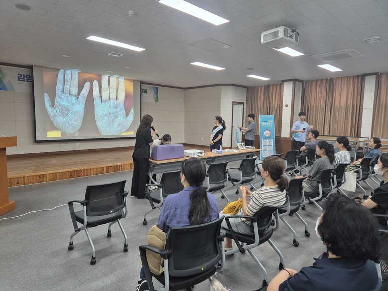 감염취약시설은 요양병원, 요양시설, 정신건강증진시설, 장애인복지시설 등 고령의 기저질환자나 면역저하자가 밀집된 시설들을 뜻하며, 최근 코로나19, 백일해, 수두 등 감염병의 산발적 발생이 지속되고 있는 상황에서 고위험군 보호와 감염병 조기 차단을 위한 대응 역량을 강화하기 위해 마련됐다. 이번 교육은 관내 감염취약시설 총 41개 기관 종사자 53명이 참석한 가운데, 감염병 예방과 대응을 위한 기관 간 협력의 중요성과 대응체계 구축을 강조하며 이론과 실습이 병행된 현장 중심의 교육으로 진행됐다.