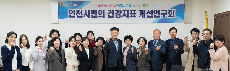 인천시의회 의원 연구단체인 ‘인천시민의 건강지표 개선 연구회(대표의원 장성숙)는 최근 시의회 문화복지위원회 세미나실에서 장성숙 대표 의원을 비롯해 신영희·나상길·임지훈 의원이 참석한 가운데 연구용역 결과보고회를 개최했다고 7일 밝혔다.