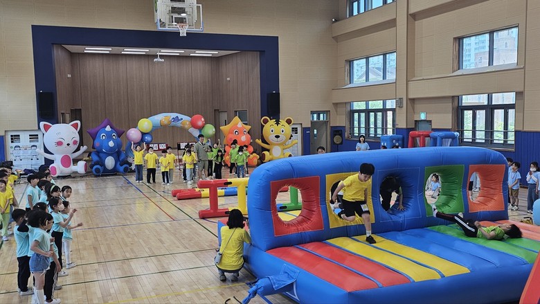 [시흥시 세계타임즈=송민수 기자] 시흥 하중초등학교병설유치원(원장 이정설) 5월 17일 금요일에 유아들을 대상으로 초등학교 1~2학년 학생들과 연계하여 “꿈동이들의 한마음 운동회”를 실시하였다. 오전 9시부터 11시 30분까지 진행된 이 행사는 작년에 이어 2회째 운영되고 있으며, 유치원에서의 유아의 경험과 배움이 단절되지 않고 초등학교로 이어지도록 함께 체험하고 참여하는 교육 행사를 마련하였다.