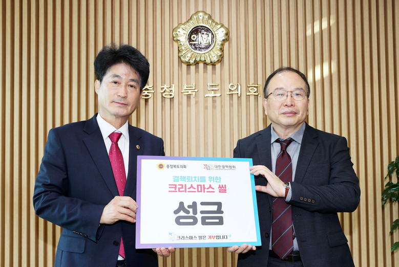 도의회는 9일 의장실에서 이양섭 의장과 안광무 대한결핵협회 충북지부 회장 등이 참석한 가운데 2025년 크리스마스 씰 증정식을 갖고 충북지부에 특별성금을 전달했다.