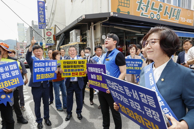 사전 집회 신고 등 철저한 준비를 거쳐 진행된 이번 순천시의회의 활동은 유동 인구가 밀집된 의료원 로터리를 시작으로 김영록 도지사가 방문 중인 웃장으로 이어졌으며, 지속적인 소통 요구에도 무시로 일관하는 전라남도에 순천시민과 순천시의회의 뜻을 다시 한번 전달하는 자리가 됐다.