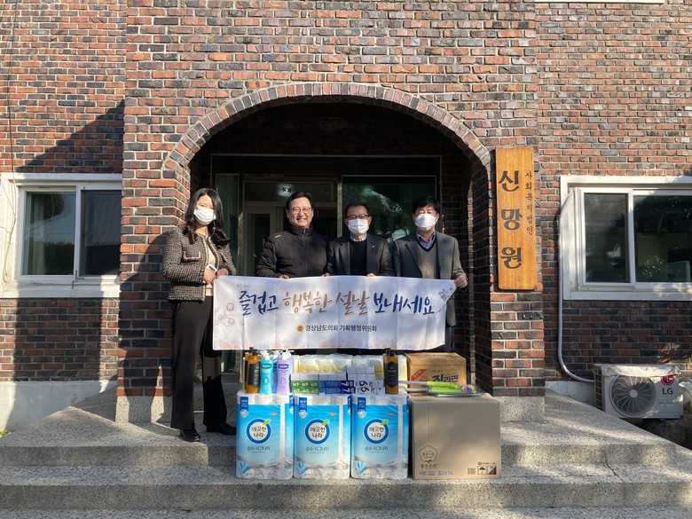 경남도의회 기획행정위원회는 매 명절마다 복지시설과 독립유공자를 직접 방문하거나 비대면으로 위문품을 전달하는 방식으로 따뜻한 나눔 문화를 실천해 오고 있다.