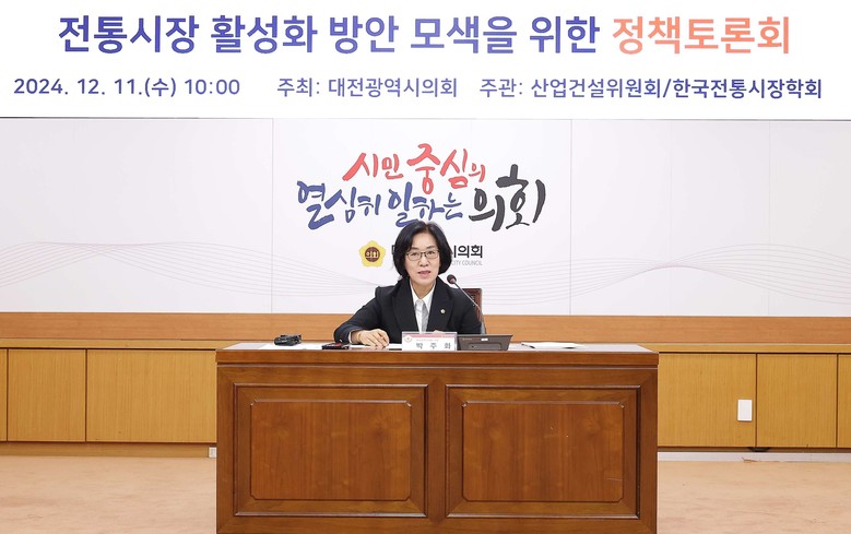 [대전 세계타임즈=이채봉 기자] 대전시의회는 산업건설위원회 박주화 의원(국민의힘, 중구1) 주재 ‘전통시장 활성화 방안 모색을 위한 정책토론회’를 11일 시의회 소통실에서 개최했다.