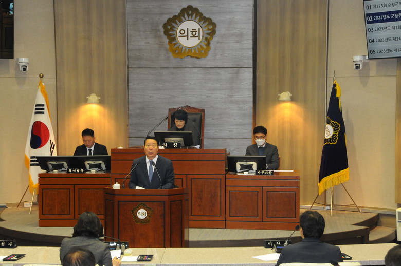 이어, 동료 의원에게 이번 임시회는 올 한해 의정활동 방향을 설정하는 중요한 회기임을 강조하며 주요업무 보고·청취 시 군민에게 희망을 주는 군정이 추진될 수 있도록 지역주민이 원하는 바를 정확하게 살펴 합리적인 대안과 발전적인 방향을 제시해 줄 것을 요청했다.
